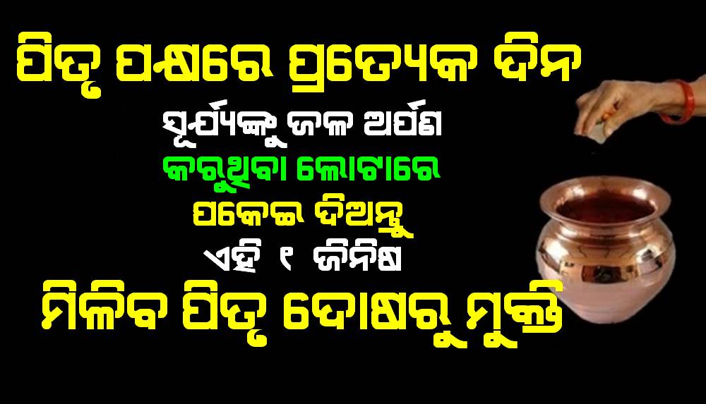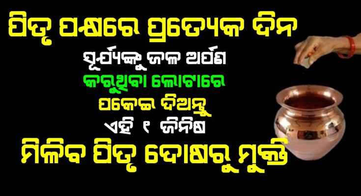 ଯେଉଁ ପିତୃଦେବଙ୍କ କାରଣରୁ ସୂକ୍ଷ୍ମରୁ ଆଶୀର୍ବାଦ ମିଳିଥାଏ ସେହି ଘରେ ପିତୃଙ୍କ କାରଣରୁ ସୁଖ ସମୃଦ୍ଧି ଏବଂ ଉନ୍ନତି ଆସିଥାଏ । ଚଳିତ ବର୍ଷ ପିତୃ ପକ୍ଷ ଆସିଲାଣି । ତେଣୁ ଏମିତିରେ ସୂର୍ଯ୍ୟ ଦେବଙ୍କୁ କେଉଁ ଉପାୟରେ ଜଳ ଅର୍ପଣ କଲେ ପିତୃ ଦେବଙ୍କୁ ମୋକ୍ଷ ପ୍ରାପ୍ତି ହେବ ଏବଂ ସୂକ୍ଷ୍ମରୁ ଆଶୀର୍ବାଦ ପ୍ରାପ୍ତ ହେବ ଏବଂ ଜାତକରେ କୌଣସି ଦୋଷ କିପରି ଲାଗିବ ନାହିଁ ସେହି ବିଷୟରେ କହିବୁ । ତେବେ ପିତୃ ଦେବଙ୍କୁ ଜଳ ଅର୍ପଣ କରିବା ସମୟରେ କିଛି ନିୟମର ପାଳନ ନିଶ୍ଚୟ କରିବା ଉଚିତ । ଜଳ ଅର୍ପଣ ସମୟରେ ଦକ୍ଷିଣ କିମ୍ବା ପୂର୍ବକୁ ମୁହଁ କରି ଦ୍ୱିପ୍ରହର କିମ୍ବା ସକାଳ ସମୟରେ ଜଳ ଅର୍ପଣ କରିବା ଉପଯୁକ୍ତ ସମୟ ହୋଇଥାଏ ।