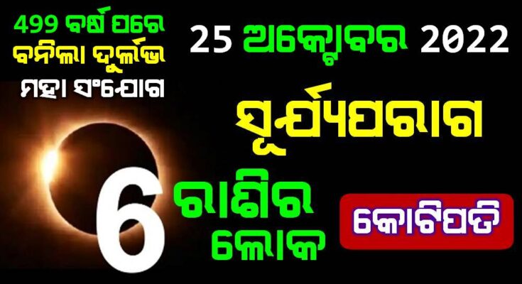 ଭାରତ ଏହା ଦେଖାଯିବ ତେବେ ଏହାର ସୂତ କାଳ ମଧ୍ୟ ମାନ୍ୟ ହେବ ସୂର୍ଯ୍ୟ ପରାଗ ର ସୁତକ ପରାଗ ଲାଗିବାର 12 ଘଣ୍ଟା ପୂର୍ବରୁ ଆରମ୍ଭ ହୋଇଯିବ | ଏହି ସଂଯୋଗ ଯୋଗୁ 6 ରାଶି ଅତ୍ୟନ୍ତ ଶୁଭ ଫଳ ପାଇବାକୁ ଯାଉଛନ୍ତି |ସେମାନଙ୍କ ଭାଗ୍ୟ ଚମକିବାକୁ ଯାଉଛି | ଧନର ପ୍ରାପ୍ତି ହେବା ଘରେ ଧନ ବୃଦ୍ଧି ହେବାର ସମ୍ଭାବନା ରହିଛି | ତେବେ ଆସନ୍ତୁ ଜାଣିବା ସେହି ଭାଗ୍ୟଶଳୀ ରାଶି କିଏ କିଏ?