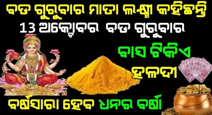 ତେବେ ଯଦି ଆପଣଙ୍କ ଘରେ ଧନର ଅଭାବ ହେଉଛି କିମ୍ବା ଧନ ସଂଚୟ ରେ ଅସୁବିଧା ହେଉଛି ତେବେ ଆପଣଙ୍କୁ ପ୍ରତ୍ୟେକ ବୃହସ୍ପତି ବାରରେ ଏହି ଉପାୟ କରୁବା ନିହାତି ଆବଶ୍ୟକ । ତେବେ ଆପଣ ଟିକିଏ ଗଙ୍ଗା ଜଳ ନିଅନ୍ତୁ ଏଥିରେ ହଳଦୀ ମିଶାଇ ଘରର ସବୁ ଜାଗାରେ ଛିଞ୍ଚି ଦିଅନ୍ତୁ ଏହାକୁ ପ୍ରତ୍ୟକ ଦିନ କରିପାରିବେ କିମ୍ବା କେବଳ ବୃହସ୍ପତି ବାରରେ କରିପାରିବେ ଏହା କରିବା ଦ୍ୱାରା ଆପଣଙ୍କ ଘରେ ଧନ ବଢିବାକୁ ଲାଗିବ । ଏହି ପ୍ରୟୋଗ କରିବା ପରେ ଆପଣ ଏହାକୁ ଯେଉଁଠି ଆପଣଙ୍କର ଧନ ରଖିବାର ସ୍ଥାନ କିମ୍ବା ଆପଣ ପର୍ସ ରେ ମଧ୍ୟ ଏହି ହଲଦୀକୁ ରଖିପାରିବେ । ଏହି ପରି କରିବା ଦ୍ୱାରା ବୃହସ୍ପତି ଦେବ ଖୁସି ଏବଂ ପ୍ରସନ୍ନ ହୋଇଥାନ୍ତି । ହଳଦୀର ଏହି ଛୋଟ ପ୍ରୟୋଗ କରିବା ଦ୍ୱାରା ଆପଣଙ୍କ ଜୀବନରେ ସୁଖ ସମୃଦ୍ଧି ଆସିଯାଇଥାଏ ।