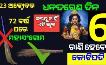 ଆମେ ଆପଣଙ୍କୁ ୨୩ ଅକ୍ଟୋବର ରବିବାର ଦିନର ରାଶିଫଳ କହିବାକୁ ଯାଉଛୁ। ଜ୍ୟୋତିଷ ଶାସ୍ତ୍ର ଅନୁସାରେ ବାର, ତିଥି, ଗ୍ରହ ଓ ନକ୍ଷତ୍ର ମାନଙ୍କୁ ଆଧାର କରି ରାଶିଫଳ ଗଣନା କରାଯାଇଥାଏ। ଏହି ରାଶିଫଳ ଦ୍ଵାରା ବ୍ୟକ୍ତିର ବ୍ୟକ୍ତିତ୍ଵ, କ୍ୟାରିୟର, ବ୍ୟାପାର, …