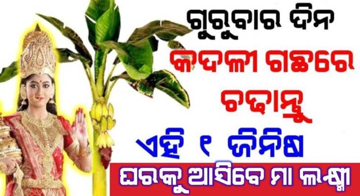 ୧ . ଗୁରୁବାର ଦିନ କଦଳୀ ଗଛରେ କିଛି ବିଶେଷ ଜିନିଷ ଅର୍ପିତ କରିବା ଦ୍ୱାରା ବୃହସ୍ପତି ଦେବ ପ୍ରସନ୍ନ ହୁଅନ୍ତି । ଏହି ଉପାୟ ଅନୁଯାୟୀ ଏକ ହଳଦିଆ କପଡ଼ାରେ ନଅ ଖଣ୍ଡ ଚନ୍ଦନ କାଠ ଗୁଡ଼ାଇ କଦଳୀ ଗଛରେ ବାନ୍ଧି ଦିଅନ୍ତୁ । ଏହି ଉପାୟକୁ ସକାଳୁ ଉଠି ସ୍ନାନ କରିବା ପରେ କରିବା ଉଚିତ । ଏହାଦ୍ବାରା ଗୁରୁଗ୍ରହ ମଜବୁତ ହେବା ସହିତ ସବୁ ଆର୍ଥିକ ସମସ୍ୟା ଦୂରେଇ ଯାଇଥାଏ । ବ୍ୟାପାରରେ ଉନ୍ନତି ହେବା ସହିତ ମାନସିକ ଶାନ୍ତି ମଧ୍ୟ ପ୍ରାପ୍ତ ହୋଇଥାଏ ।