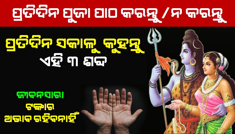 ସମୟ ସମୟରେ ଏପରି ସମସ୍ୟା ଜୀବନରେ ଆସିଥାଏ ଯେତେବେଳେ ମନୁଷ୍ୟ କଣ କରିବ କିଛି ବୁଝି ପାରେ ନାହିଁ । ସକାଳୁ ଉଠିବା ଠାରୁ ରାତିରେ ଶୋଇବା ପର୍ଯ୍ୟନ୍ତ ସବୁବେଳେ ନକରାତ୍ମକ ଚିନ୍ତାଧାରା ଆସିଥାଏ । ଚତୁଃପାଶ୍ୱର୍ରେ ନକରାତ୍ମକତା ଦେଖା ଦେଇଥାଏ । ଅନେକ ପରିଶ୍ରମ କରିବା ସତ୍ତ୍ୱେବି ପରିବାର ସଦସ୍ୟଙ୍କ ଆବଶ୍ୟକତାକୁ ପୂରଣ କରି ପାରି ନଥାଏ । ସେତେବେଳେ ସେ କଣ କରିବ କିଛି ବୁଝି ପାରିନଥାଏ ଏବଂ ଭାଙ୍ଗି ପଡ଼ିଥାଏ । ତେଣୁ ଆଜିକାର ଏହି ଲେଖାରେ ଆମେ କେବଳ ତିନୋଟି ଶବ୍ଦ ବିଷୟରେ କହିବୁ ଯାହାକୁ ଆପଣଙ୍କୁ ବିନା ପୂଜା ପାଠରେ କେବଳ ସକାଳୁ ଉଠି କହିବାକୁ ପଡ଼ିବ ।