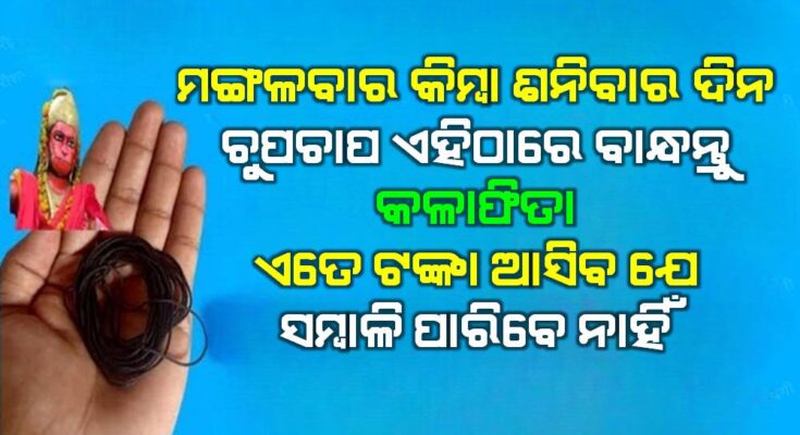 ବିବାହ ସମୟରେ ମଧ୍ୟ ବର ବଧୂ କୁ କଳା ଟୀକା ଲାଗେଇଥାଏ,ଏହି କଳା ରଙ୍ଗ ସର୍ବଦା ଖରାପ ଉର୍ଜା ଠାରୁ ଆପଣଙ୍କୁ ବଞ୍ଚେଇଥାଏ । ତେବେ ଆପଣଙ୍କୁ କଳା ଫିତା ନେଇକି ପାଖରେ ଥିବା ଶନି ମନ୍ଦିର କିମ୍ବା ହନୁମାନ ମନ୍ଦିରକୁ ଚାଲିଯିବେ ତେବେ ଯଦି ଆପଣ ଶନି ମନ୍ଦିର ଯାନ୍ତି ଶନିଦେବଙ୍କୁ ଦିଆଯାଉଥିବା ସୋରିଷ ତେଲ ରେ ଏହି କଲା ଫିତା ବୁଡାଇ ଦେବେ ନଚେତ ସେହି ତେଲକୁ କଳା ଫିତାରେ ଲଗାଇ ଦେବେ । ଏବଂ ଯଦି ଆପଣ ହନୁମାନ ମନ୍ଦିର ଯାଉଛନ୍ତି ତେବେ ହନୁମାନ ଜୀଙ୍କ ସିନ୍ଦୁର ସେଇଥିରେ ଲଗାଇ ଦିଅନ୍ତୁ