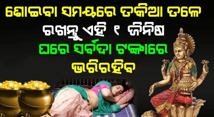 ବନ୍ଧୁଗଣ ବାସ୍ତୁ ଶାସ୍ତ୍ର ଅନୁସାରେ ଆମ ଘରେ ଏହିପରି କିଛି ସାଧାରଣ ଜିନିଷ ରେ ଏତେ ଅଧିକ ସକାରାତ୍ମକ ଉର୍ଜା ରହିଥାଏ କି ଯଦି ତାକୁ ଆମେ ତକିଆ ତଳେ ରଖି ଶୋଇବା ତେବେ ବହୁତ ଅଧିକ ଶୁଭ ଫଳ ମିଳିଥାଏ | ଏହା ଆମ ଜୀବନ ରେ ଅନେକ ସମସ୍ୟାର ସମାଧାନ ମଧ୍ୟ କରିଥାଏ | ତେବେ ବନ୍ଧୁଗଣ ଆମ ଜୀବନ ରେ ଏମିତି ଅନେକ ଘଟଣା ଘଟିଯାଏ ଯାହା ଆମେ କେବେ କଳ୍ପନା ବି କରିପାରନ୍ତି ନାହିଁ | ଯେମିତି କି ଯେତେ କଷ୍ଟ କଲେ ମଧ୍ୟ ସଫଳତା ମିଳେ ନାହିଁ, ଯେତେ ପୂଜା ପାଠ କଲେ ମଧ୍ୟ ଘରେ ଆର୍ଥିକ ସମସ୍ୟା ଦୂର ହୁଏ ନାହିଁ | ଚାକିରୀ ସମସ୍ୟା,ସ୍ୱାସ୍ଥ୍ୟ ସମସ୍ୟା, ଘରେ ନକାରାତ୍ମକ ଶକ୍ତି, ଦୃଷ୍ଟି ଦୋଷ ଏବଂ ବେପାର ରେ କ୍ଷତି ହେବା ଭଳି ସମସ୍ୟା ରହିଥାଏ |